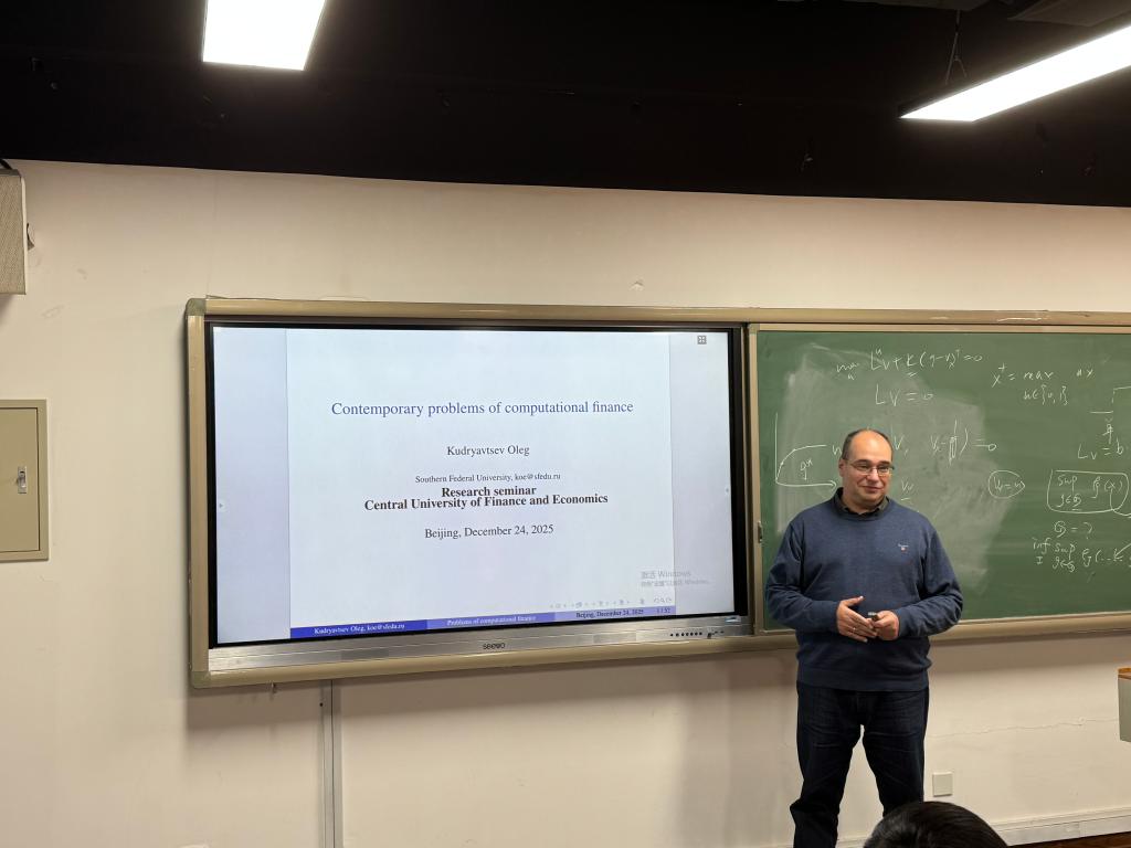 2025年12月24日星期三下午,来自俄罗斯南方联邦大学数学、力学与计算机科学研究所的Oleg Kudriavtsev教授受邀在中央财经大学沙河校区13号楼209教室为与会师生带来题为“Contemporary problems of computational finance”的学术报告,本次论坛由中国精算研究院韦晓副教授主持。