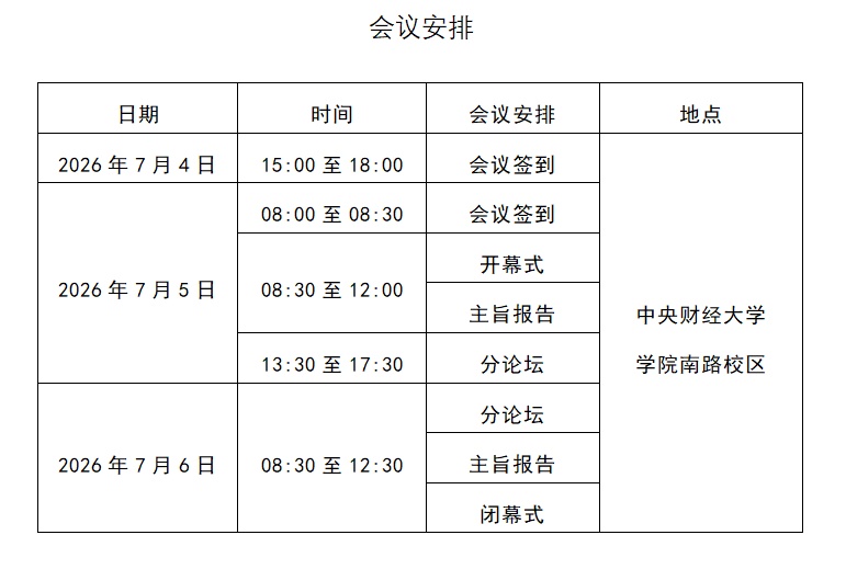 agementfrom July 4 to July 6, 2026. The conference will be held on the South College Road Campus of CUFE,Beijing, China.